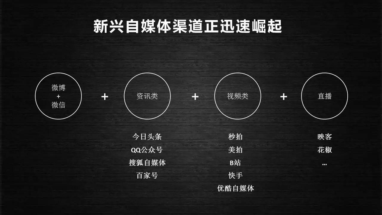 微博、微信+资讯类平台+视频类+直播平台,越来越多的渠道出现。