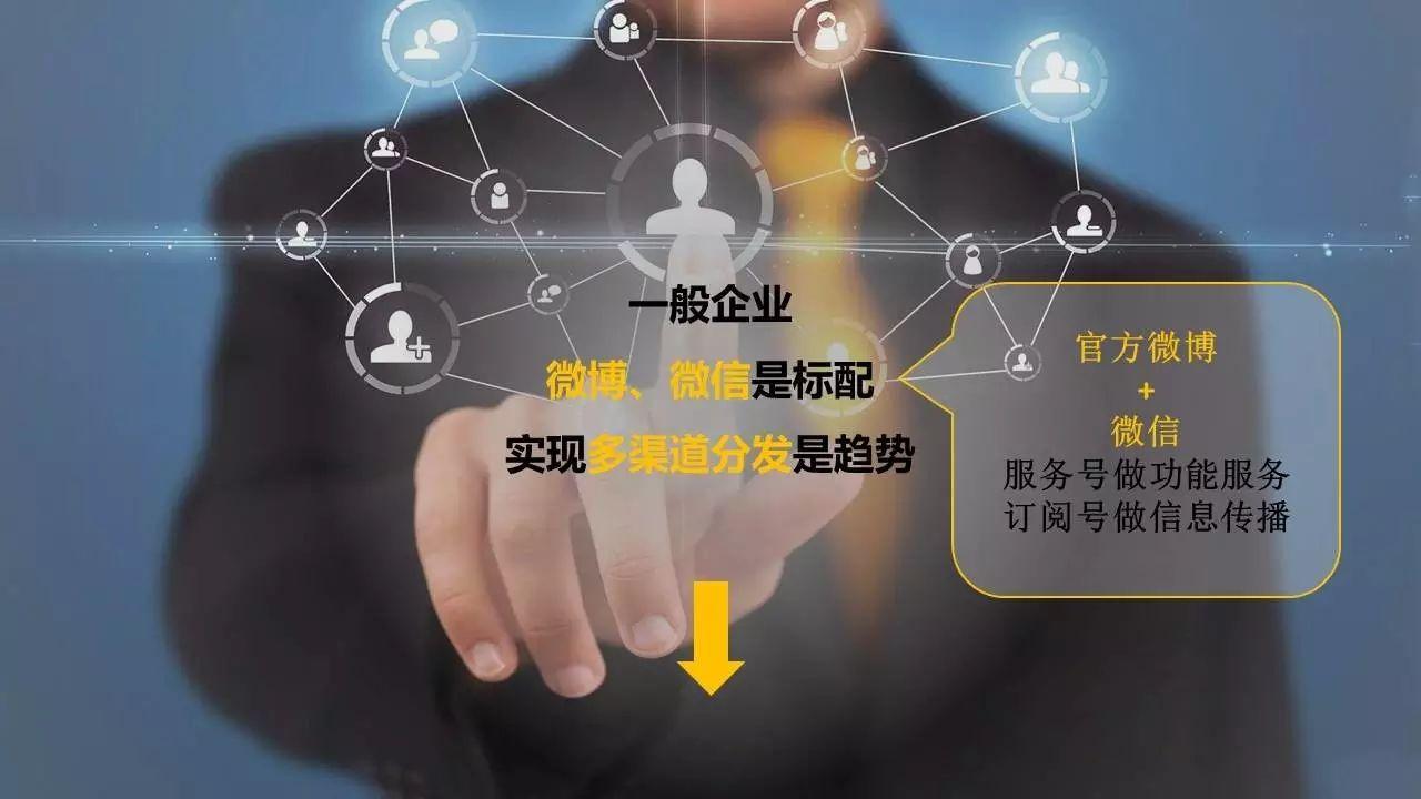 所以,对一般企业来说,微博、微信是标配,官方微博+一个订阅号用来信息传播+一个服务号用来做功能服务就够了,为什么我这里还建议做微博,虽然好多人说现在用微博的人越来越少了,但我们能发现这样一个现象,无论是哪个热点,基本都是在微博上先火起来,微信才跟上,所以虽然我们发现微博的互动性下降了,但其实很多人还是习惯去微博上查看信息。另外,微信是封闭的系统,并且是在移动端,当用户在PC端搜索你的时候是搜不到微信的,但是微博在百度上能搜索到。所以对一般企业来说,微博还是有必要做的。你可以不花太多的人力、物力去做,但一定要有。